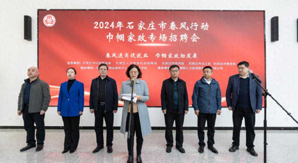 此次招聘会以“春风送岗促就业巾帼家政助发展”为主题,线上线下共有55个家政企业报名,提供岗位400余个。参加巾帼家政专场招聘会的有:石家庄市妇联二级调研员房景新;石家庄市商务局副局长杜铁行;石家庄市总工会女工委主任李志清;石家庄市教育局四级调研员姚龙;石家庄市就业服务中心副主任祁玉涛;石家庄市人力资源和社会保障局就业促进科科长刘旭宁;石家庄市就业服务中心农村劳动力管理科科长王玺;石家庄市就业服务中心劳动力市场办公室主任许月;河北冀联人力资源服务集团党委书记吴晓军;各组织单位负责同志;各县(市、区)妇联妇女发展部部长;巾帼家政公司负责人;市属高校学生;灵活就业者。