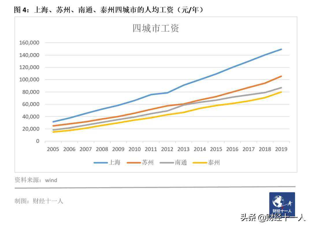 除了地理位置,居住在哪个城市,也会显著影响工资收入水平。比如,上海、苏州、南通、泰州,四个城市地理位置相近,但工资水平差异明显(图4)。