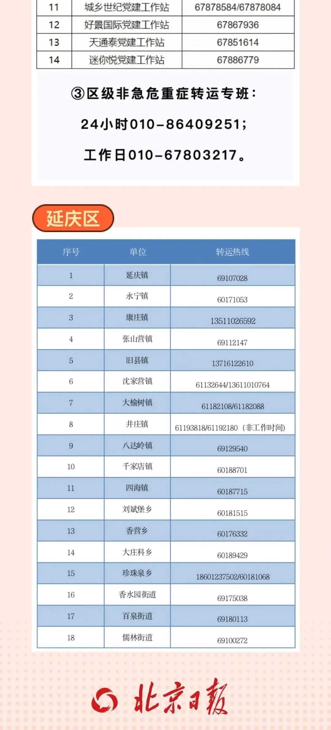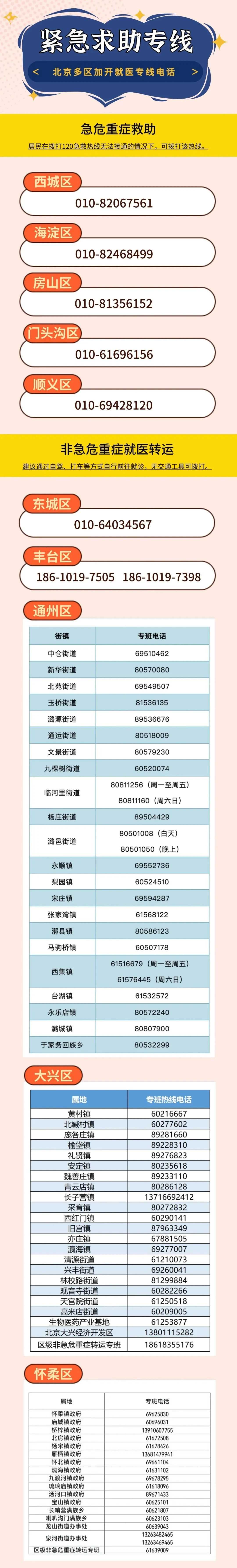 近日,北京市东城区、西城区、朝阳区、海淀区、丰台区、石景山区、门头沟区、房山区、通州区、顺义区、昌平区、大兴区、怀柔区、平谷区、密云区、延庆区、经开区加开专线电话,提醒市民朋友们可在120急救热线繁忙时,拨打相应的电话呼叫服务。