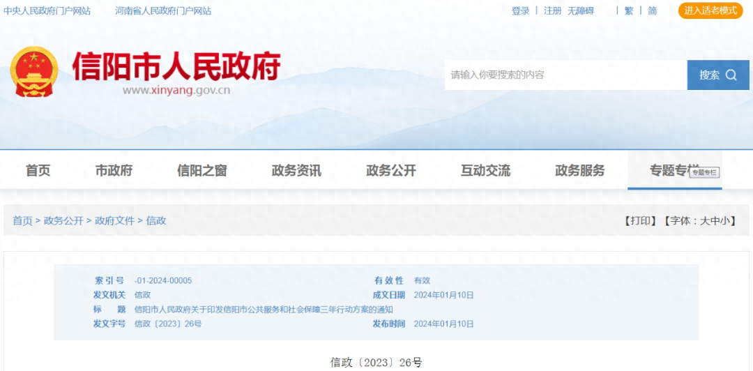 信阳市公共服务和社会保障三年行动方案(2023—2025年)