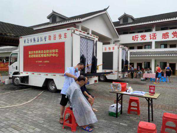 重庆市慈善总会助浴快车服务正在为沐浴后的老人理发。(受访者供图)