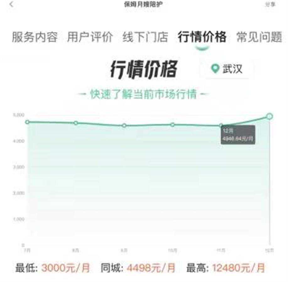 记者在某同城App上看到,武汉保姆月嫂陪护类的家政服务收费,为近半年以来最高,约为4498元/月。