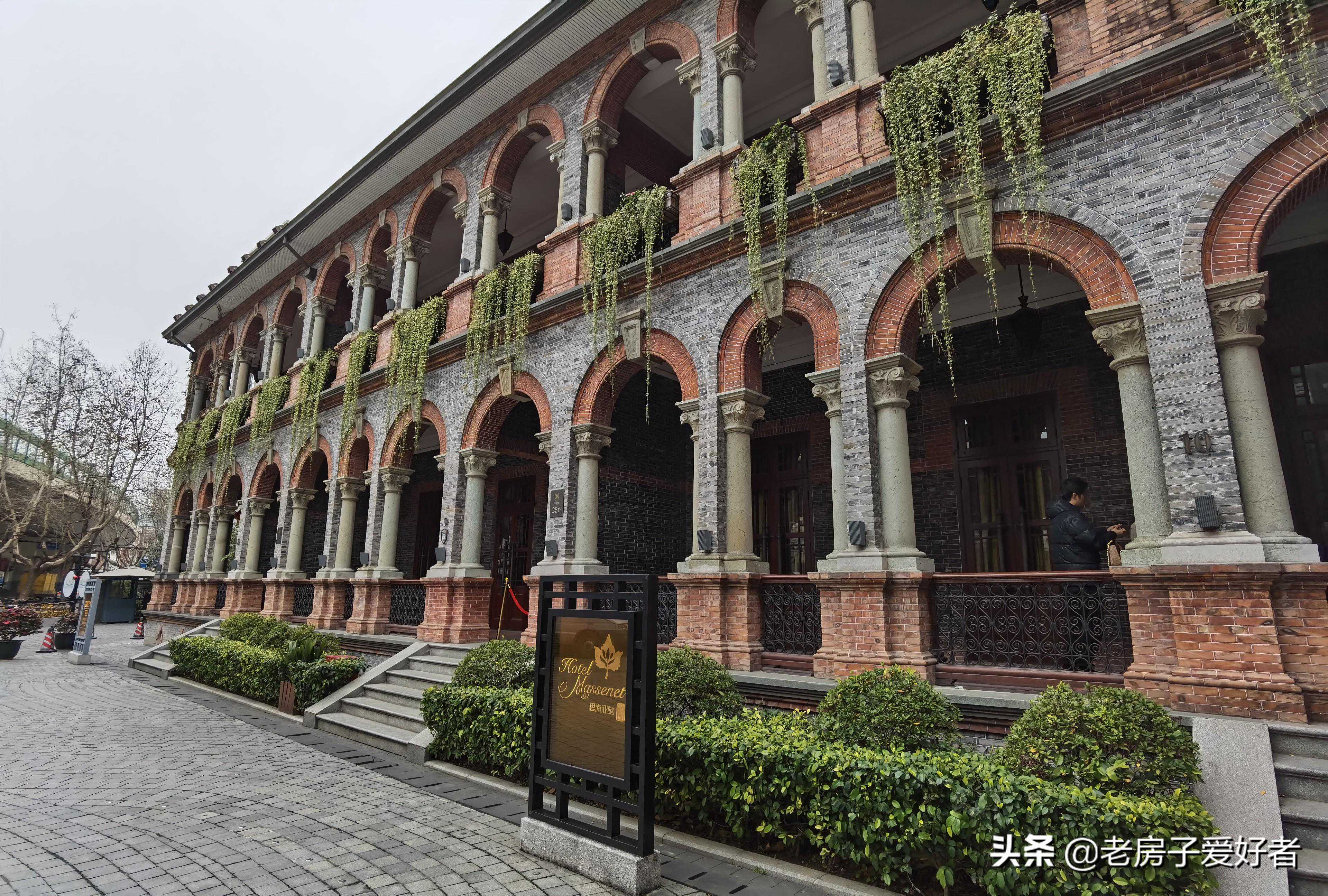重庆南路256号,外廊式建筑,长长的的拱形连廊令人过目不忘。这幢楼在改造时被旋转了90度,现为思南公馆的多功能宴会厅。