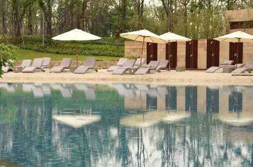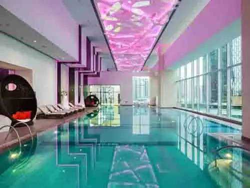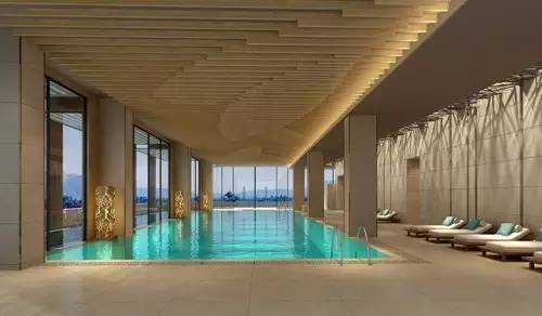 特色:分为室内、室外两个泳池。室内恒温泳池位于6楼,毗邻瑞吉健身中心,落地窗在俯瞰室外泳池美景时亦可饱览成都全景。有各种饮品和私人餐饮菜单可选。室外游泳池呈半月形,供应宜人加热池水并可饱览提督街美景。可免费使用干蒸、湿蒸房。