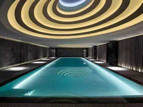 特色:博舍标志性的穹顶采光设计也被用在了游泳后部分。设计师以川西梯田为灵感,循序渐进的曲线充满视觉张力。天气晴好时仿若天光与水面融为一体,而夜晚游泳时亦可仰望静美夜空。