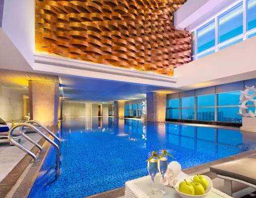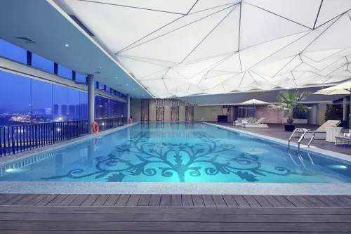 特色:泳池位于酒店5楼奥力健身俱乐部,是拥有4S级的室内恒温阳光露顶泳池。泳池上方覆盖全透明玻璃穹顶,全透光天花让阳光能直接洒落到水中。