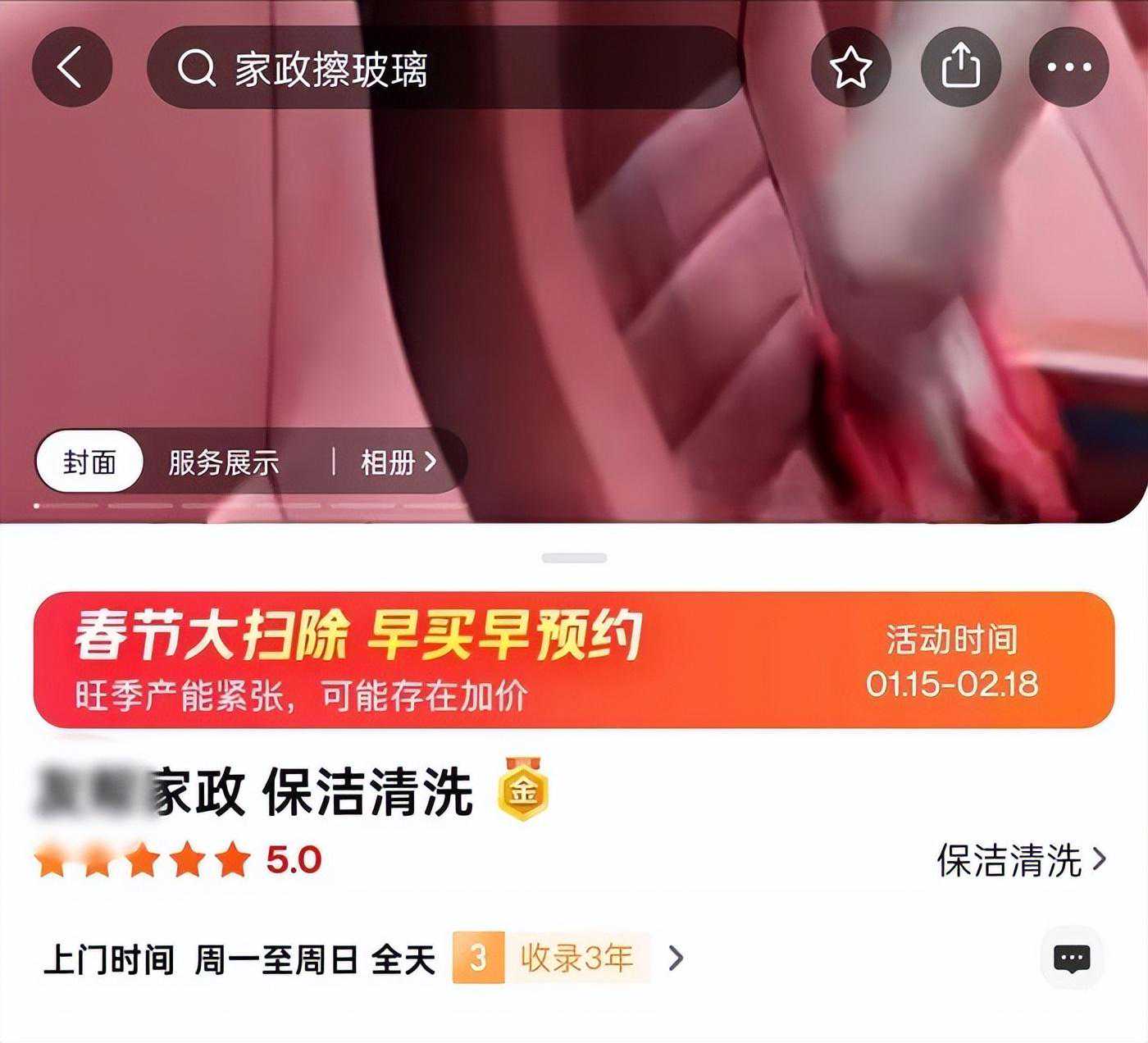 相关平台数据显示,2024年1月以来,石家庄家政服务搜索热度上升明显,春节大扫除、擦玻璃、家政服务等成搜索关键词。除擦窗保洁外,深度保洁、全屋收纳、全屋除螨、除甲醛、家电清洗等服务成为新需求。通过网络平台搜索“家政服务”,可以看到不少家政服务商家已经上架了春节大扫除、擦玻璃、全屋收纳等链接,更有商家在醒目位置提醒顾客“春节大扫除,早买早预约”“旺季产能紧张,可能存在加价”。
